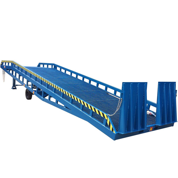 DCQY移動式液壓登車橋使用于裝卸作業(yè)不固定的場合,叉車可以直接通過它從地面駛?cè)胴涇嚿线M行裝卸作業(yè),該產(chǎn)品具有高強度的焊接鋼構(gòu),表面鋪設防滑鐵網(wǎng),附設剎車墊防止貨物裝卸時登車橋移動,采用手動液壓泵升降,不需外接電源即可輕松實現(xiàn)登車橋高度的調(diào)節(jié),可調(diào)節(jié)的掛鏈鉤可方便地與各種貨車緊密配合,使裝卸作業(yè)更安全、更快捷、更高效。